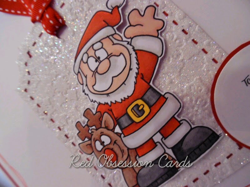I have been asked to make today's card by a friend of mine for her partner's birthday which is on New Year's Eve. I have gone for a retro digital stamp called Saturday Night Steven from Dr Digi's House Of Stamps which has been coloured using ProMarkers.